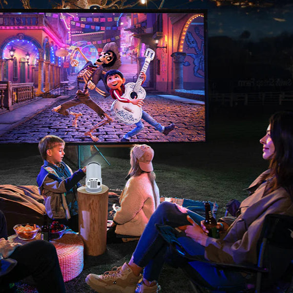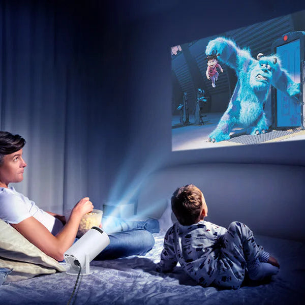 The CineGlow offers a revolutionary 180° swivel projection for an immersive theater experience in any setting. Turn walls, ceilings, or any angle into your screen for film nights, outdoor viewings, or presentations with unmatched ease.